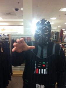 When shopping with the kids, may have found this Darth Vader hoodie that zips up completely over your head to give you a mask. That may be me using the force to choke someone… And it may not…